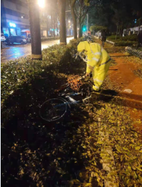 2020年12月29日下午,大风加寒潮黄色预警,上海全市开启“急冻”模式!面对这突如其来的强降温及大风的恶劣天气,在单位领导的带领下,紧急布署防范工作,一方面因受大风大雨影响,路边的自行车、电动车等非机动车被大风刮倒,对市民生活和出行造成了严重影响,要求中心队员加强巡视,一有问题马上解决,保证非机动车摆放整齐,降低危险,确保行人出行安全。另一方面要求队员保证工作安全的同时还要注意加强自身防寒保暖。这两天气温骤降,寒风凛冽,我中心队员为维护环境整洁和行人安全出行,在管辖区域的中小学、菜场附近及行人比较密集的地方加强巡逻,及时去除地面积水防止道路结冰行人滑到;迅速处理倒地的非机动车,排列整齐,方便行人出行;加强管理路边商铺广告牌的安放,以防大风吹倒误伤行人,做到防微杜渐,顺利高效的完成工作。