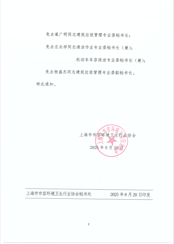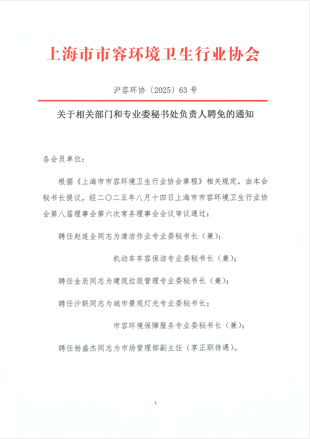 上海市市容环境卫生行业协会关于相关部门和专业委秘书处负责人聘免的通知